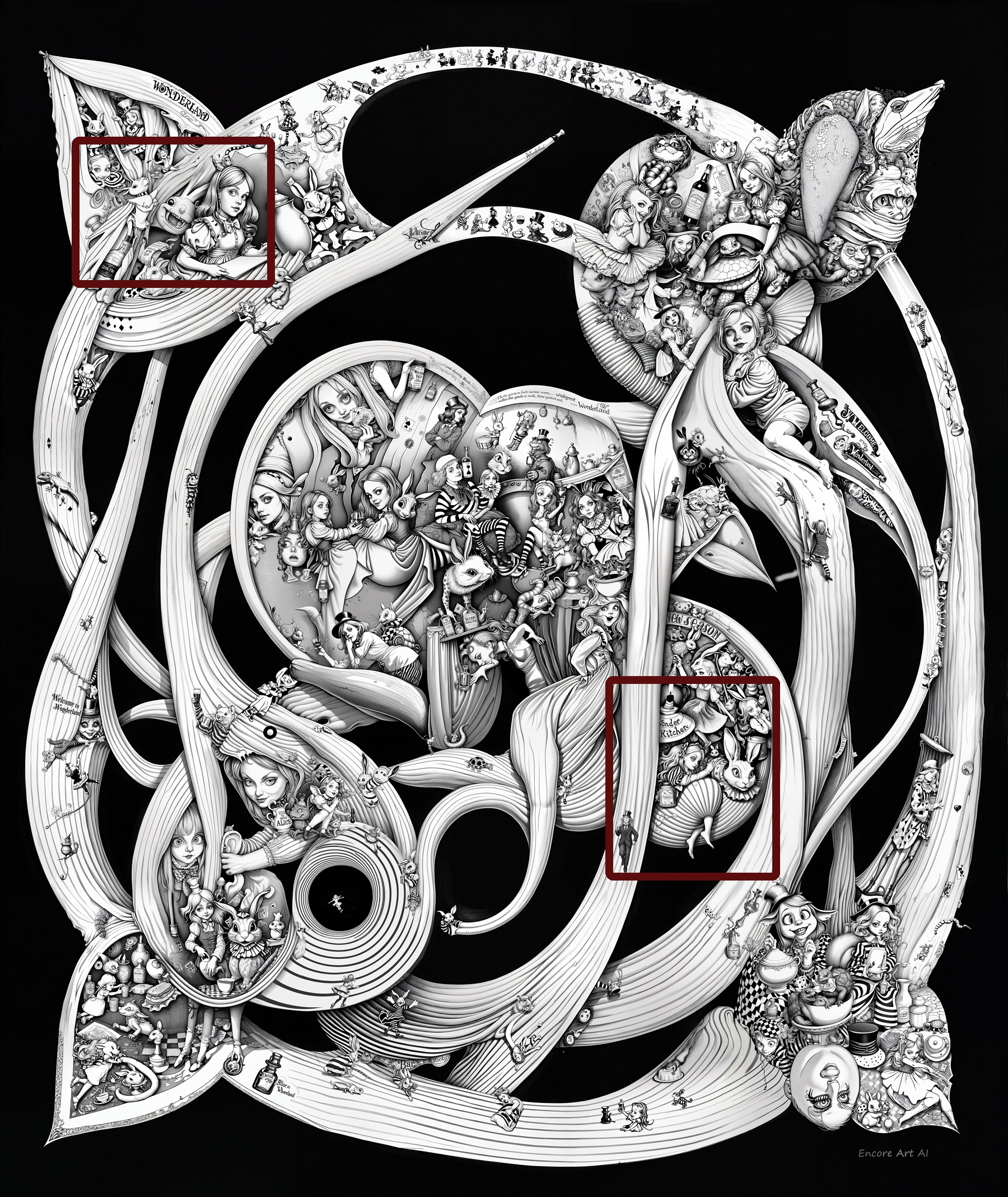 The CanvasInfusion style is a product of an AI-assisted image-rendering technique that I developed recently and have been using for making ultra high resolution images with artistic content. It is the result of my experimentation with infusing mini-scenes containing various characters, creatures and objects into a previously computer-generated image of an often abstract nature. This approach of using an abstract picture as the structural basis for making a radically different version of the image is the unifying feature of most artworks of The involute canvas series (and of the corresponding FoldPix set) published recently on ArtStation, as well as of a few of the images in the Fractal Cameos series. A series of even more spectacular images is coming soon to the Encore Art AI account, mainly of the groundbreaking 16K resolution.