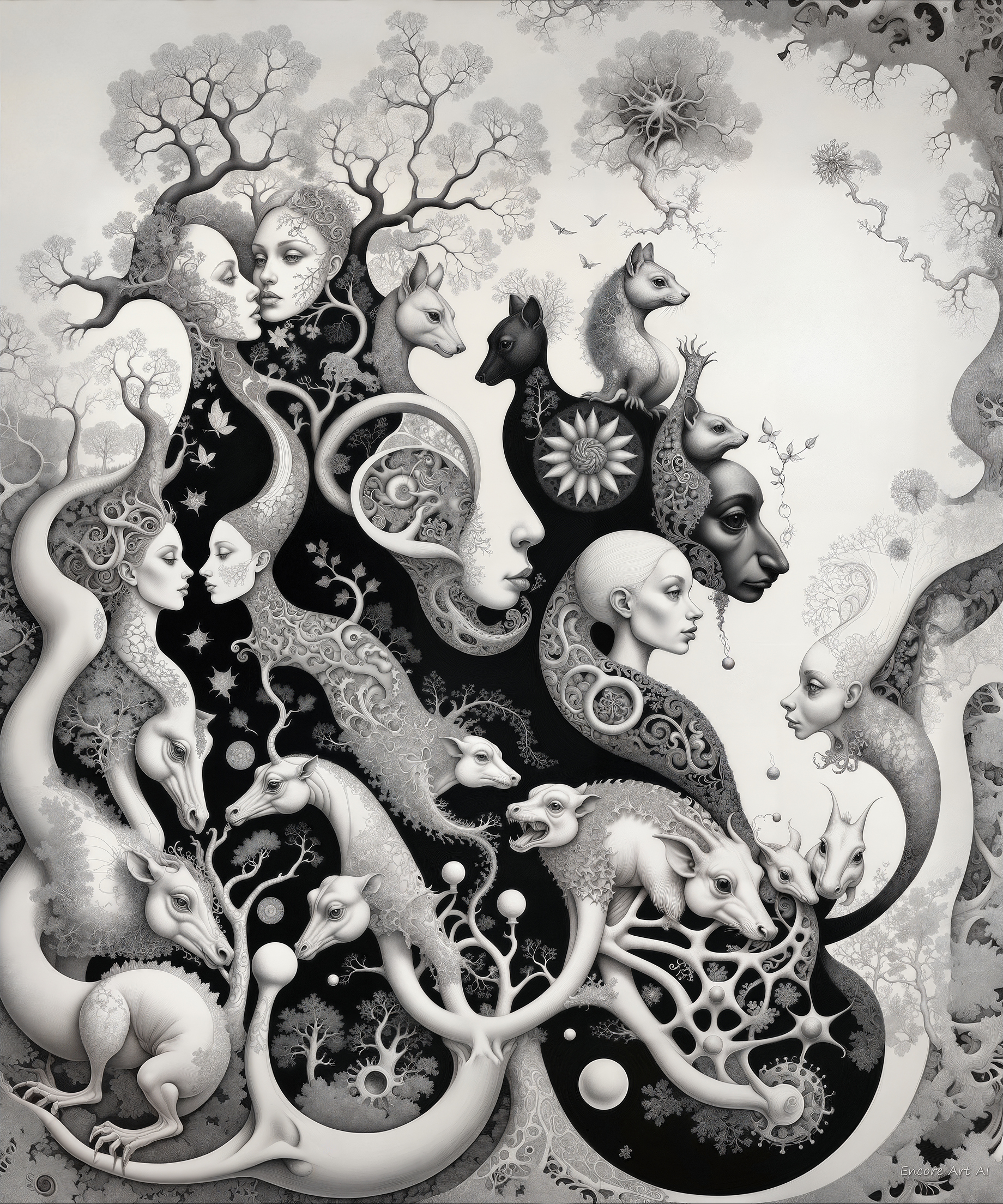 FoldPix images are another specialty of Encore Art AI. Screen art sets in the FoldPix series feature images of the 5:6 aspect ratio designed for viewing on the inner screen of a foldable phone from a number of manufacturers such as Google and Samsung (namely, Google Pixel Fold and Samsung Galaxy Z Fold6). Master images in the series are of high resolution (4K and up), each featuring a unique visual idea and exquisitely rich detail. Creating these images involved both cutting edge AI technology and laborious manual editing (also known as inpainting). In the course of preparing this digital product, each image in the set has been individually curated for the ultimate quality of the composition and fine detail not found normally in a typical AI-generated production.